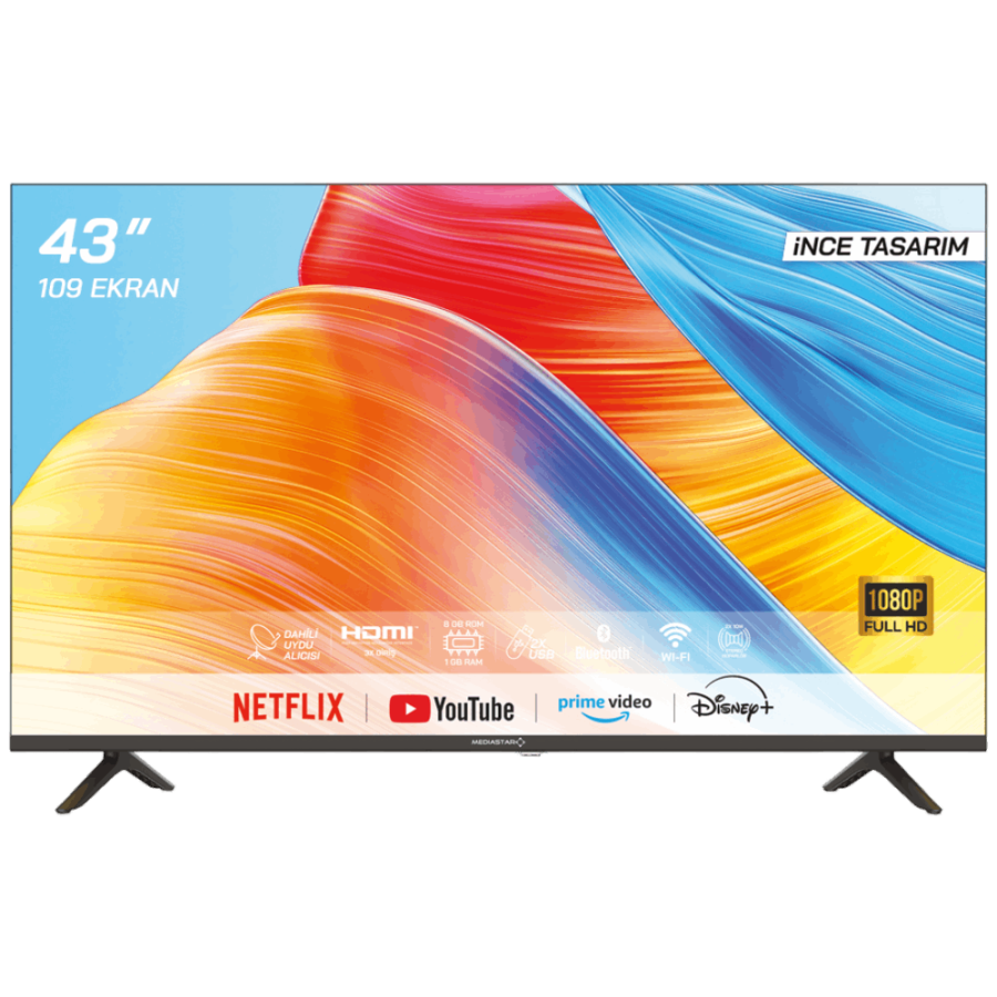 تلفزيون حجم 43 إنج سمارت أندرويد Full HD مع لوحة LED وتصميم بدون إطار