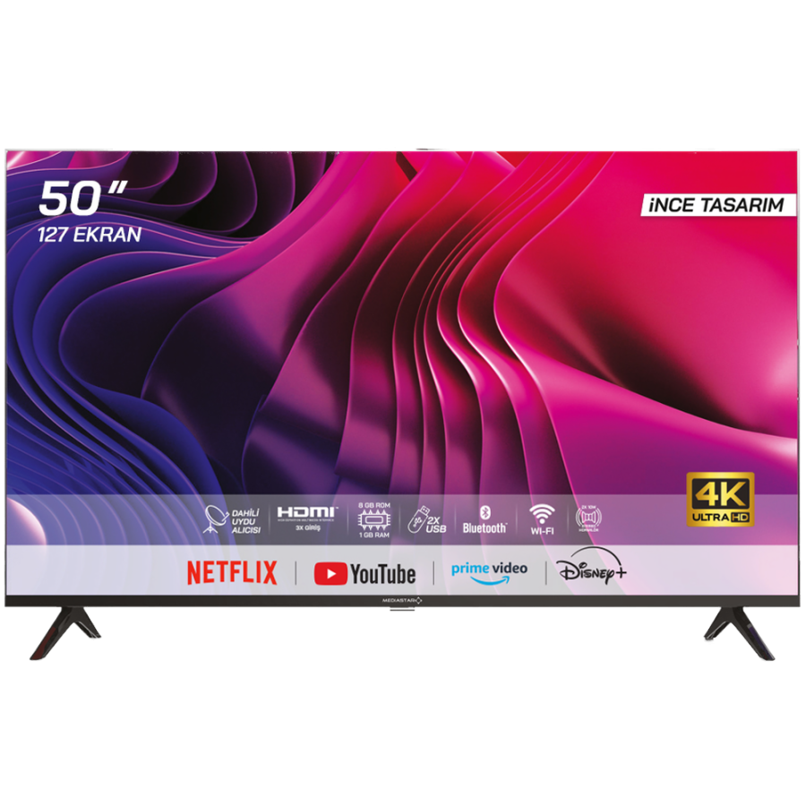 تلفزيون حجم 50 إنج سمارت أندرويد 4K Ultra HD مع لوحة LED وتصميم شاشة مسطحة