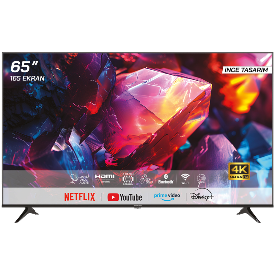 تلفزيون حجم 65 إنج سمارت أندرويد 4K Ultra HD مع لوحة LED وتصميم بدون إطار