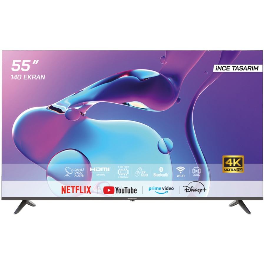 تلفزيون حجم 55 إنج سمارت أندرويد 4K Ultra HD مع لوحة LED وتصميم بدون إطار